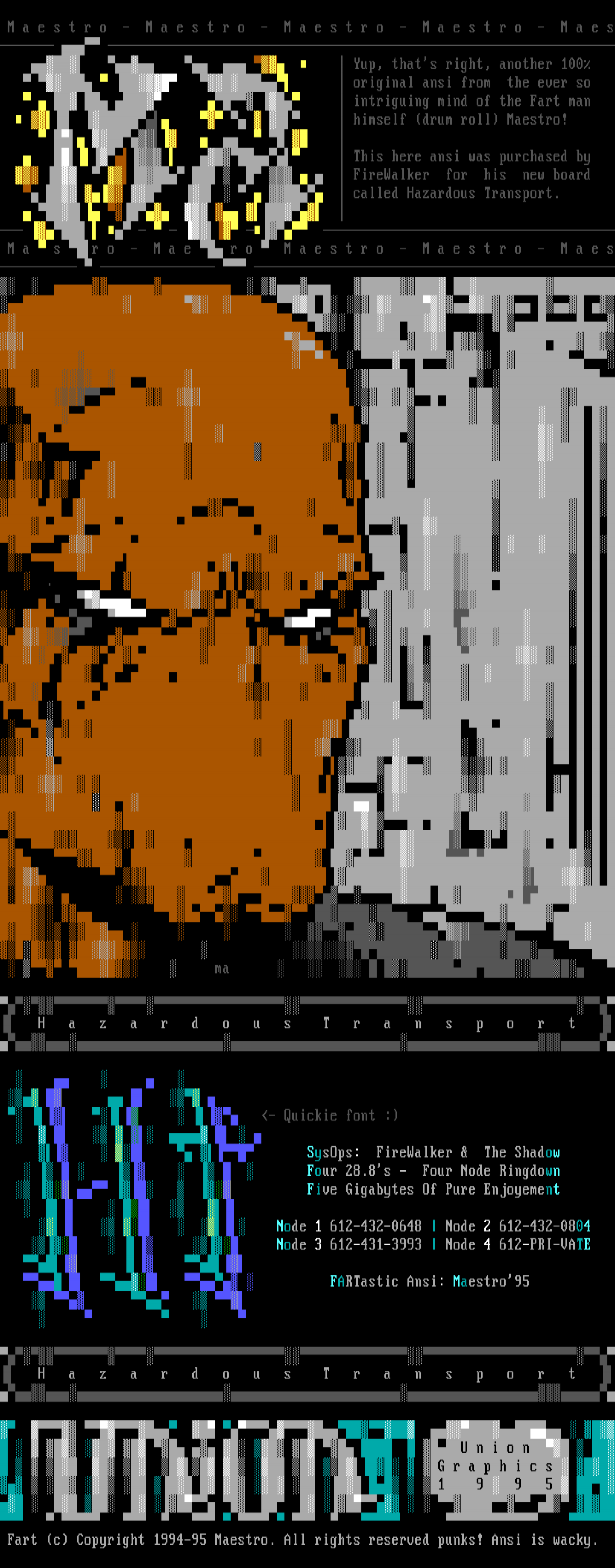 Fart c Copyright 1994-95 Maestro. All rights reserved punks! Ansi is wacky.