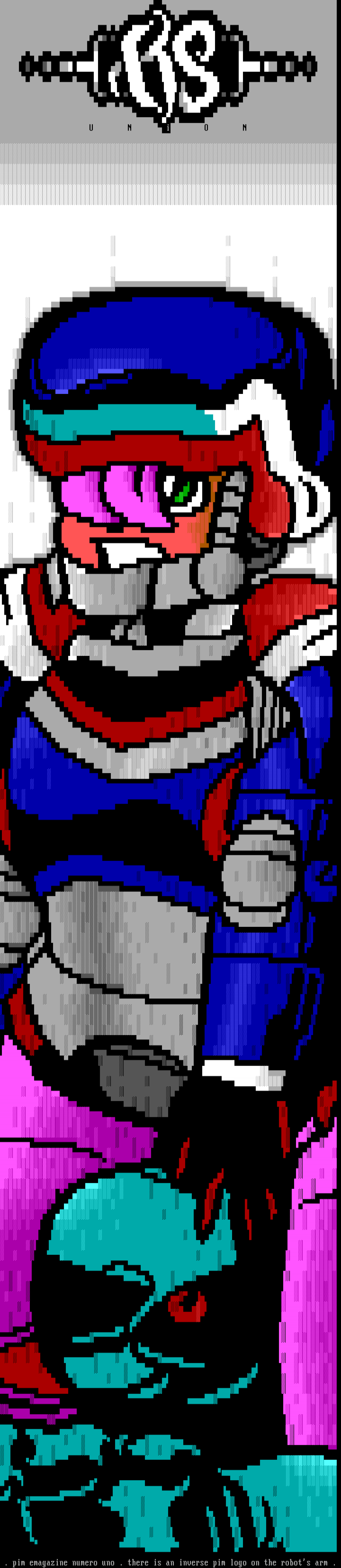 . pim emagazine numero uno . there is an inverse pim logoon the robots arm .