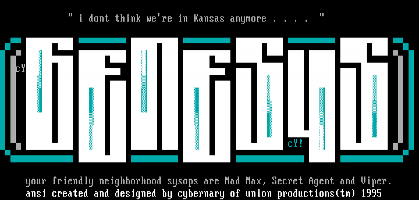 your friendly neighborhood sysops are Mad Max, Secret Agent and Viper.