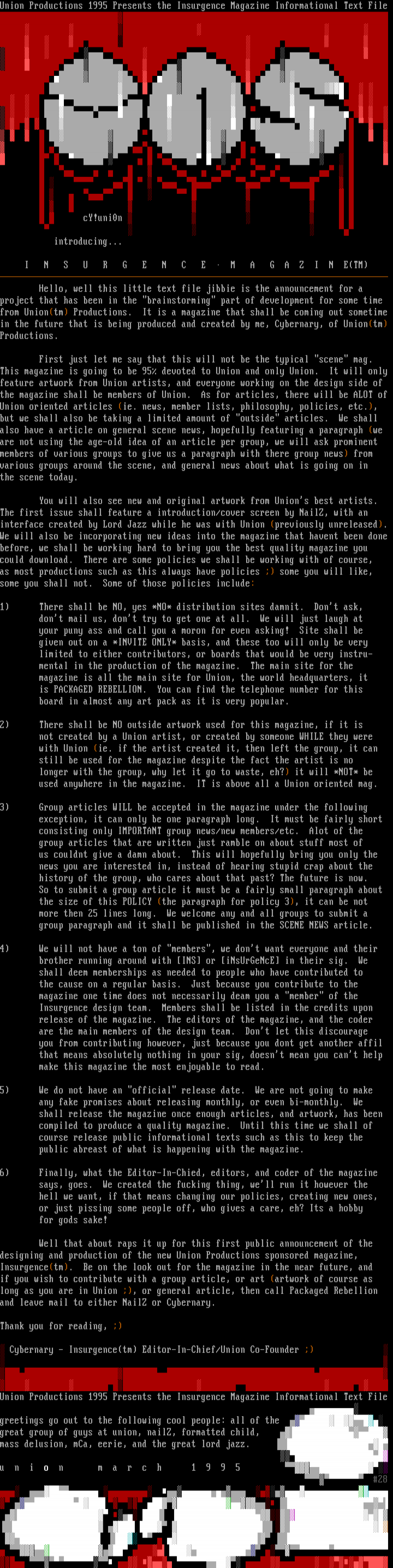 Union Productions 1995 Presents the Insurgence Magazine Inf
