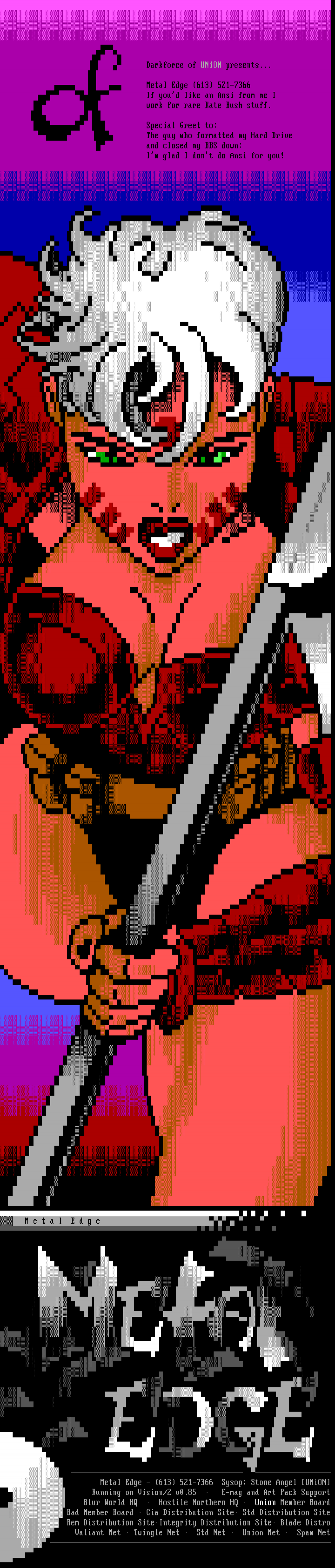 Metal Edge - 613 521-7366 Sysop: Stone Angel UNiON