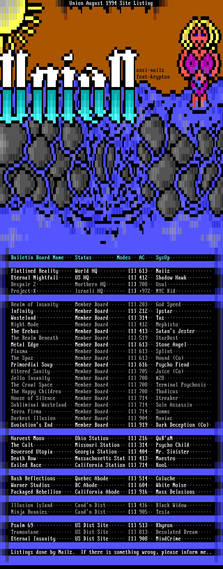 Union August 1994 Site Listing ansi-nailz font-krypton