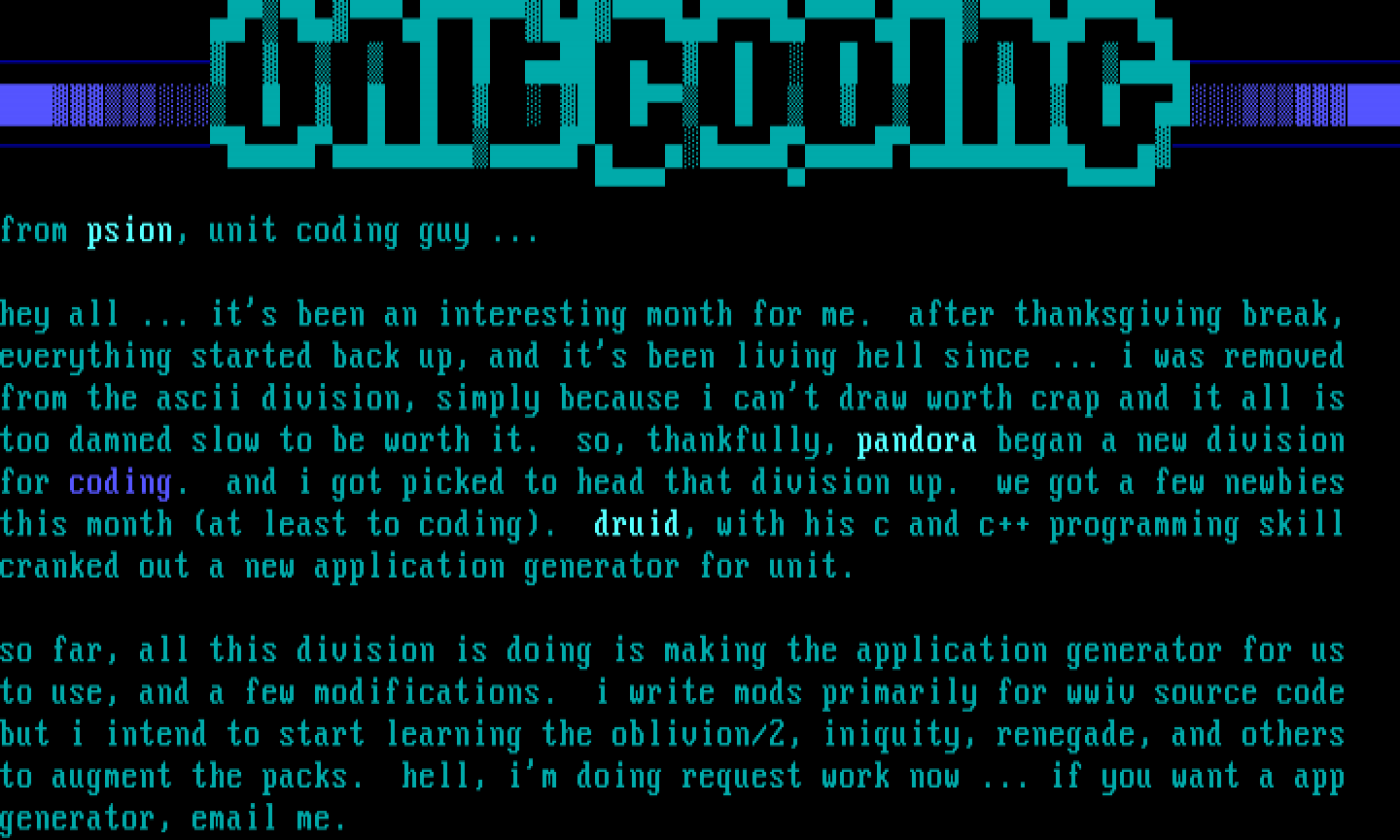 to use, and a few modifications. i write mods primarily for wwiv source code