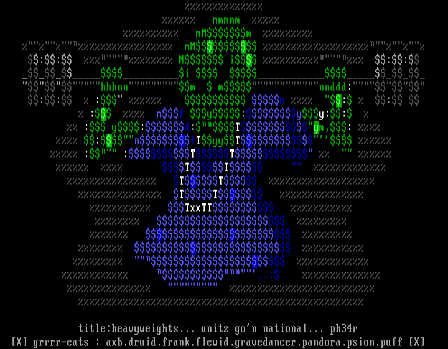 X grrrr-eats : axb.druid.frank.flewid.gravedancer.pandora.psion.p