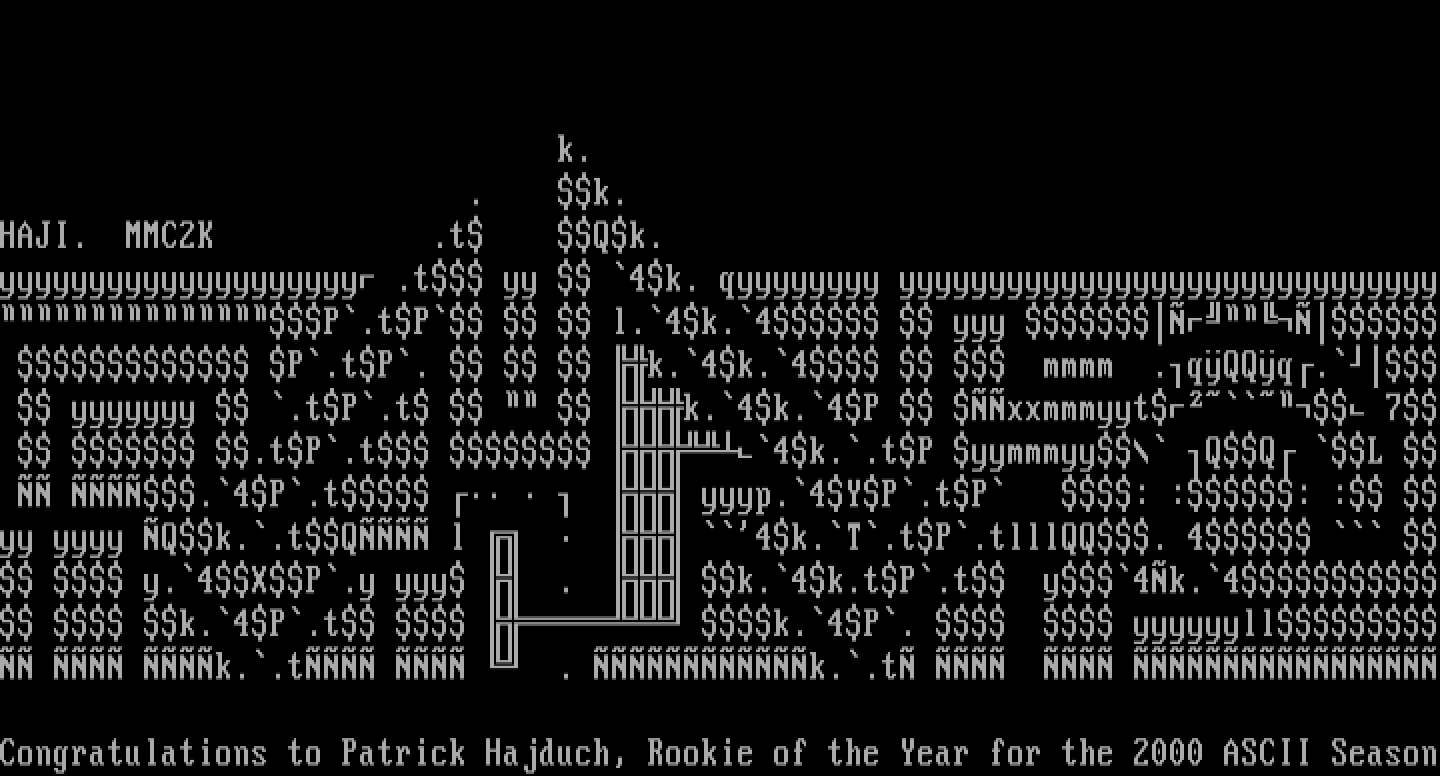 Congratulations to Patrick Hajduch, Rookie of the Year for the 2000 ASCII Season
