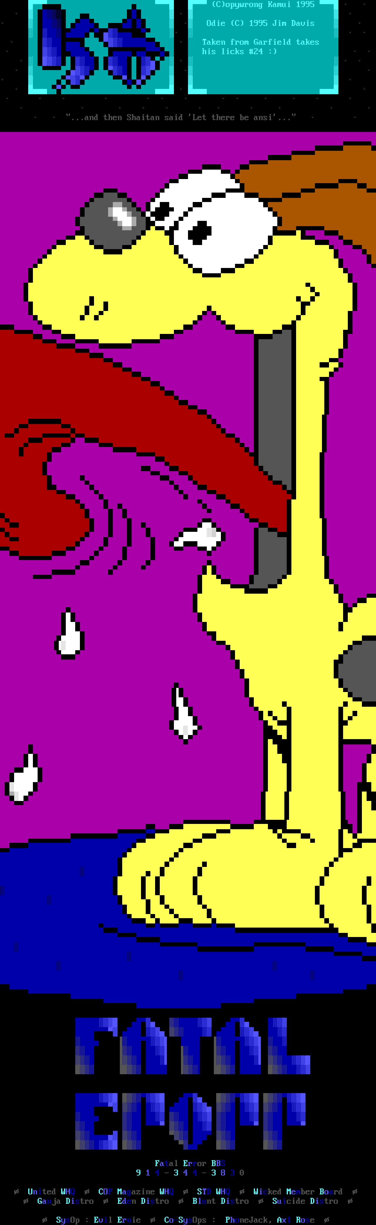 SysOp : Evil Ernie Co-SysOps : PhoneJack, Axl Rose