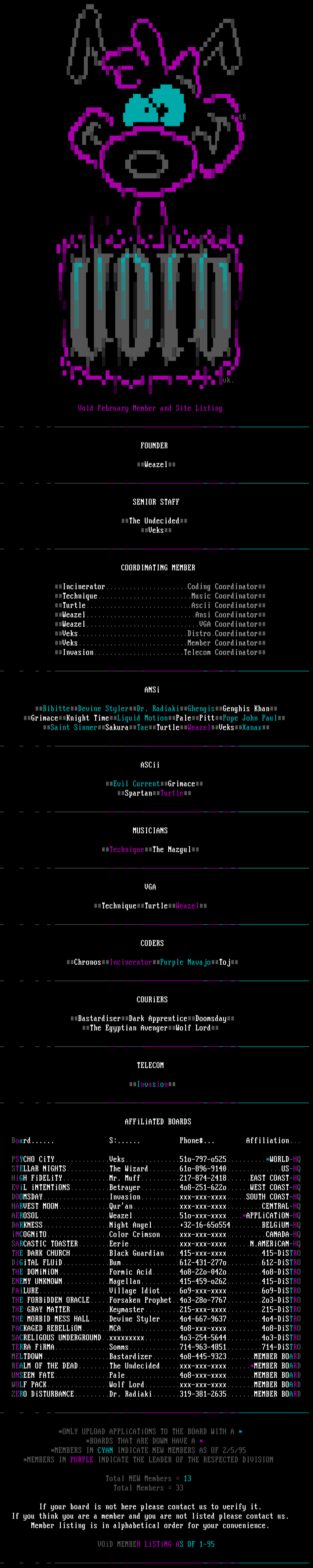 Void February Member and Site Listing