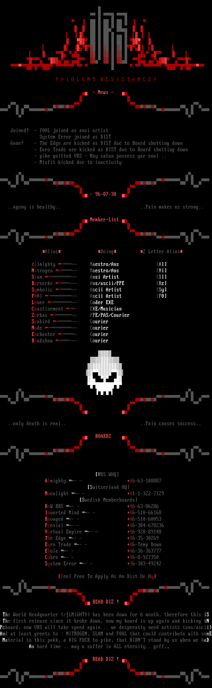 The World Headquarter /LMiGHTY has been down for 6 month, therefore this iS The first release since it broke down, now my board is up again and kicking iN Pcboard, now VRS will take speed again .. we desperatly need artists ans/asciiAnd at least greets to : NITROGEN, SLAM and F00L that could contribute with somE Material to this pakk, a BIG FUCK to pike, that DIDNT stood by us when we haD
