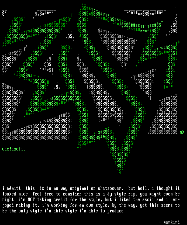 right. im NOT taking credit for the style, but i liked the ascii and i en-