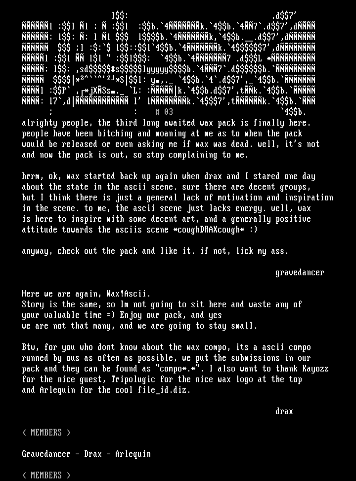 Btw, for you who dont know about the wax compo, its a ascii compo