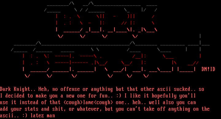 Dark Knight.. Heh, no offense or anything but that other ascii sucked.. so