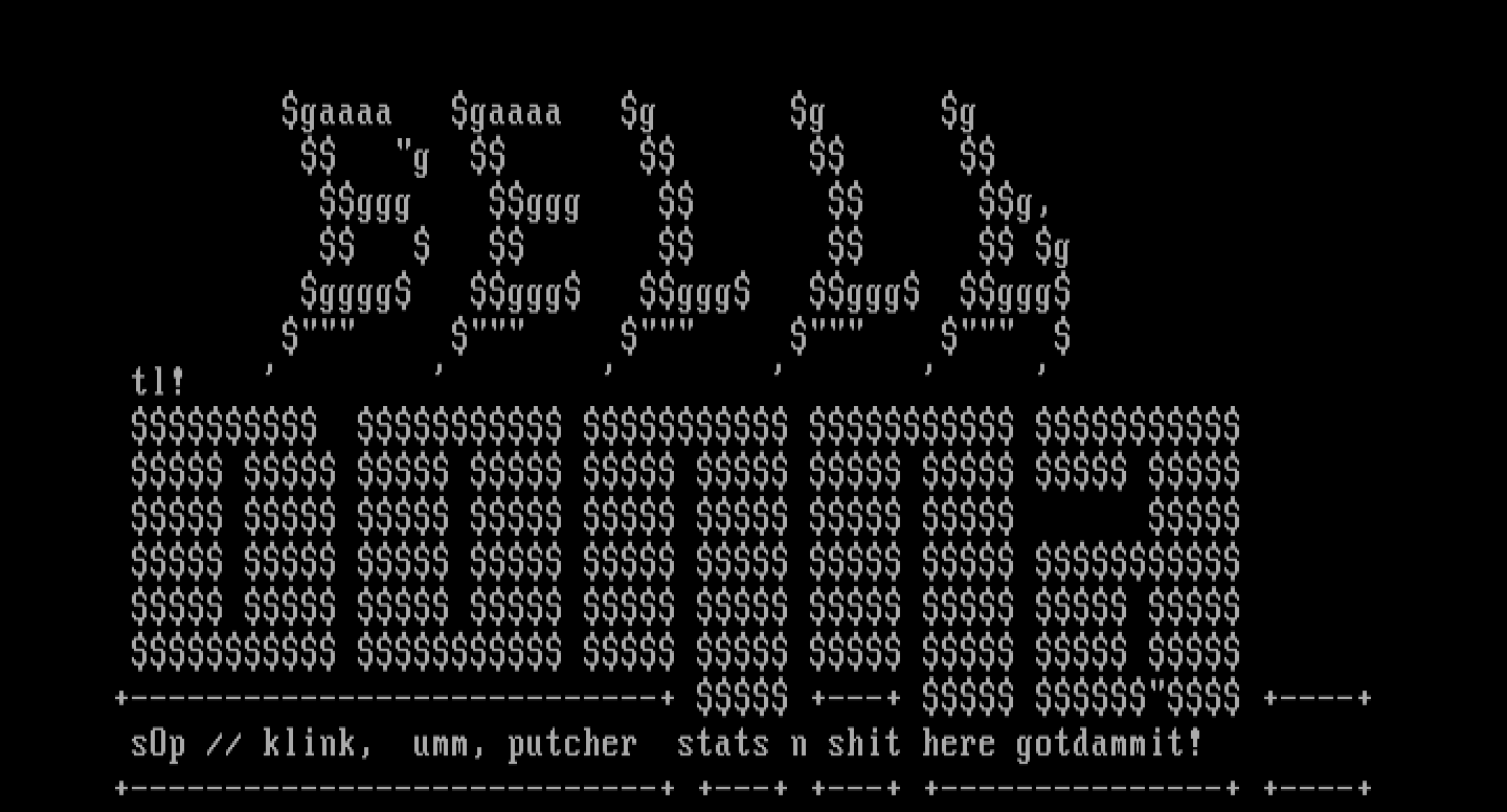 sOp // klink, umm, putcher stats n shit here gotdammit!