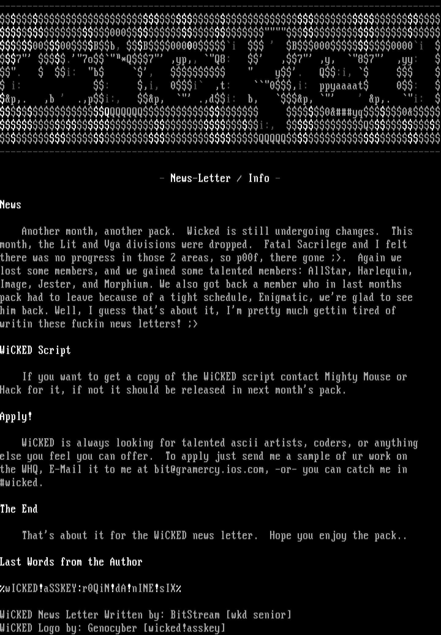 WiCKED is always looking for talented ascii artists, coders, or anything