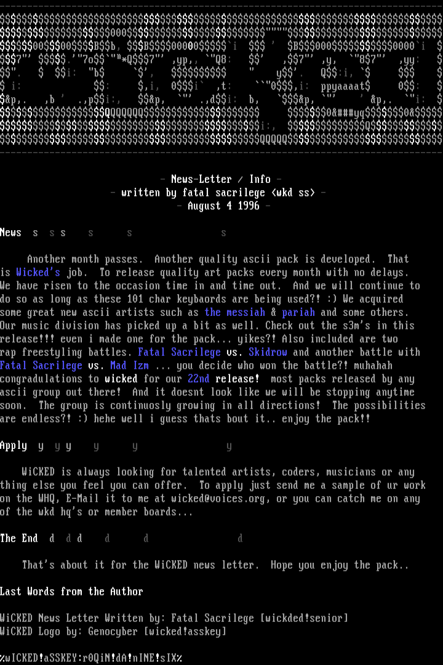 WiCKED News Letter Written by: Fatal Sacrilege wickded!senior