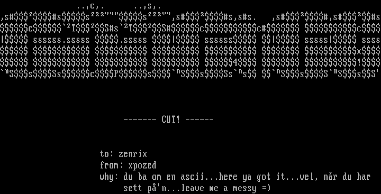 why: du ba om en ascii...here ya got it...vel, nr du har