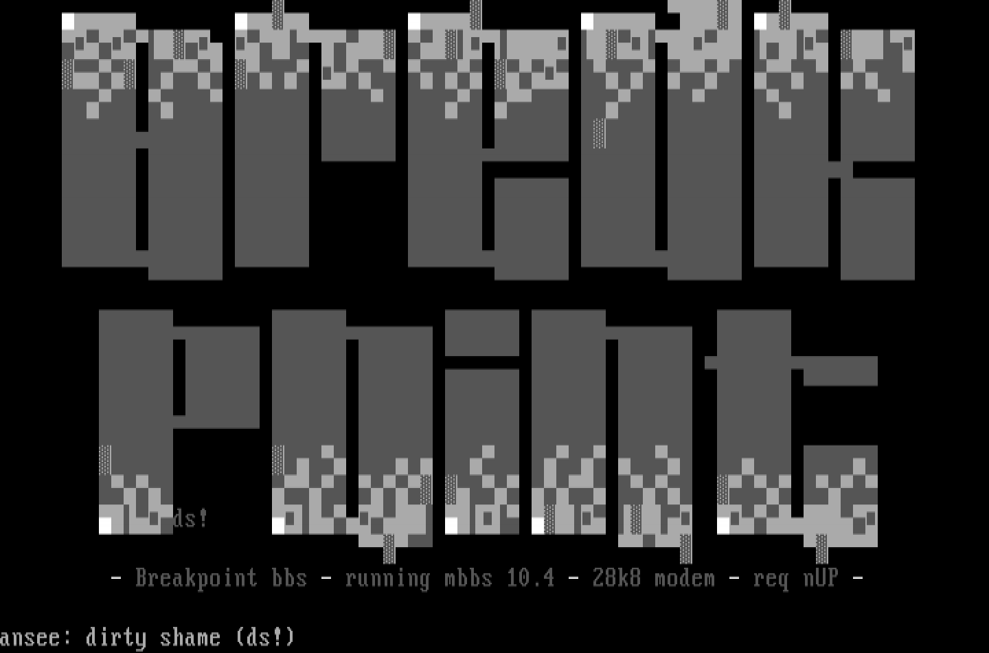 - Breakpoint bbs - running mbbs 10.4 - 28k8 modem - req nUP -