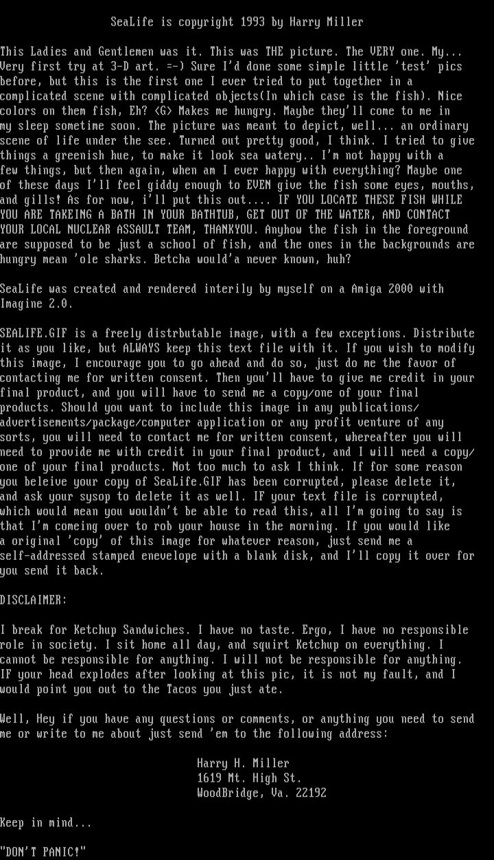 SeaLife was created and rendered interily by myself on a Amiga 2000 with