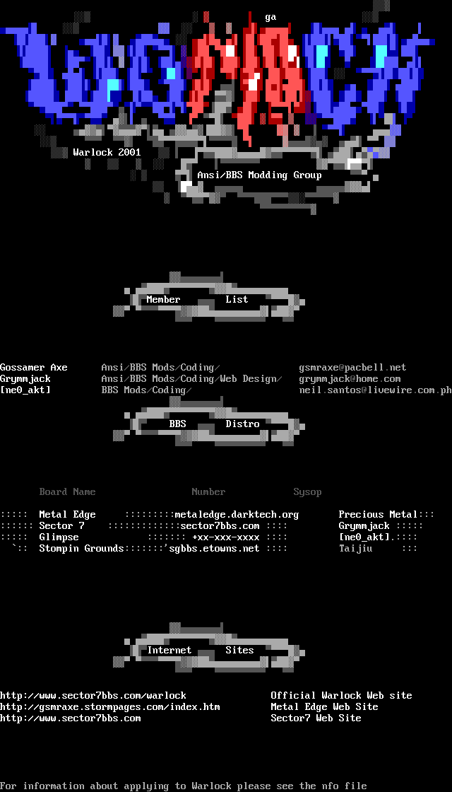 http://www.sector7bbs.com/warlock Official Warlock Web site
