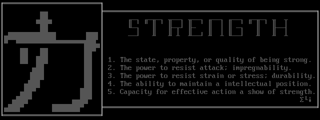 1. The state, property, or quality of being strong. 2. The power to resist attack impregnability. 3. The power to resist strain or stress durability. 4. The ability to maintain a intellectual position. 5. Capacity for effective action a show of strength.