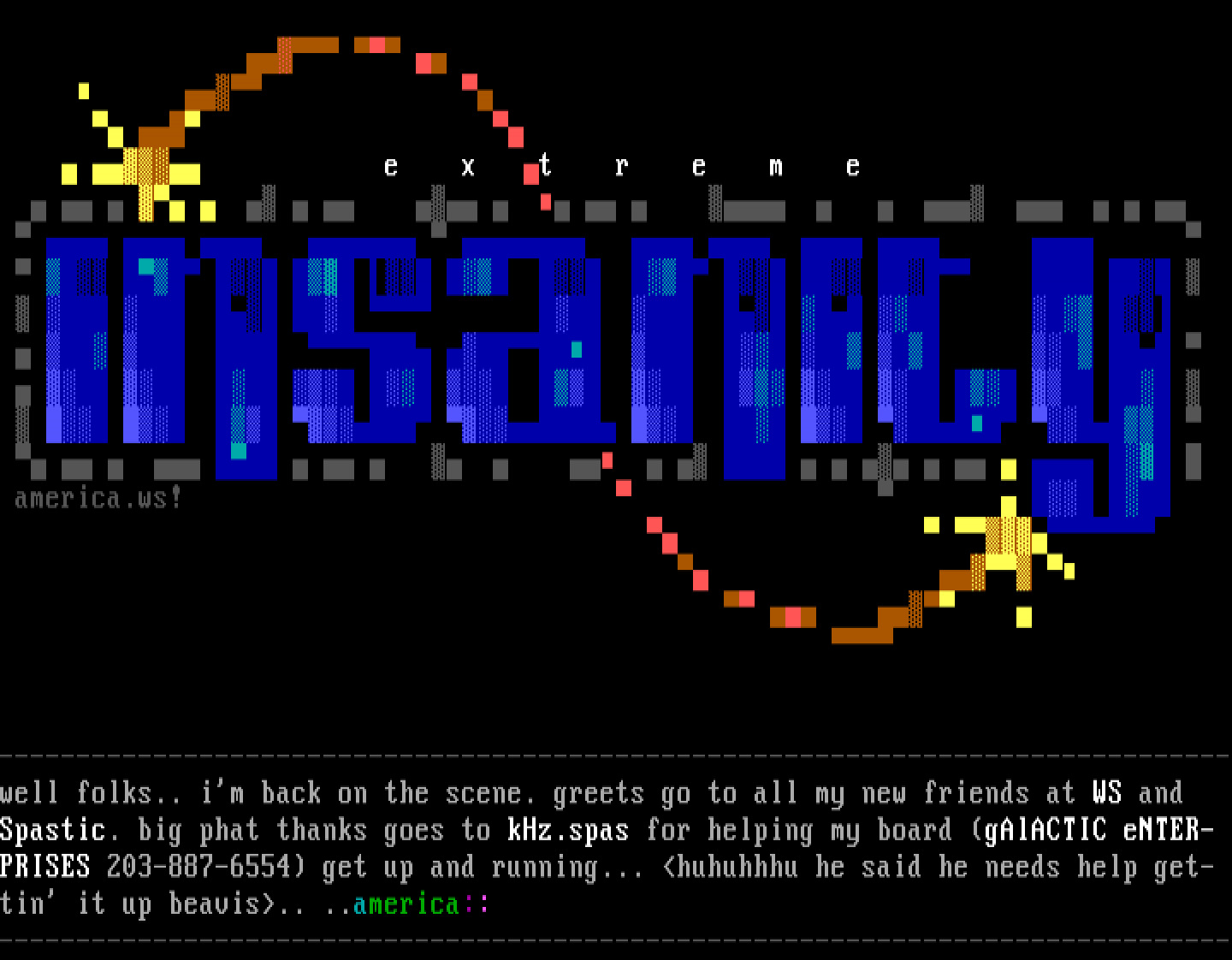 Spastic. big phat thanks goes to kHz.spas for helping my board gAlACTIC eNTER- PRISES 203-887-6554 get up and running... huhuhhhu he said he needs help get-