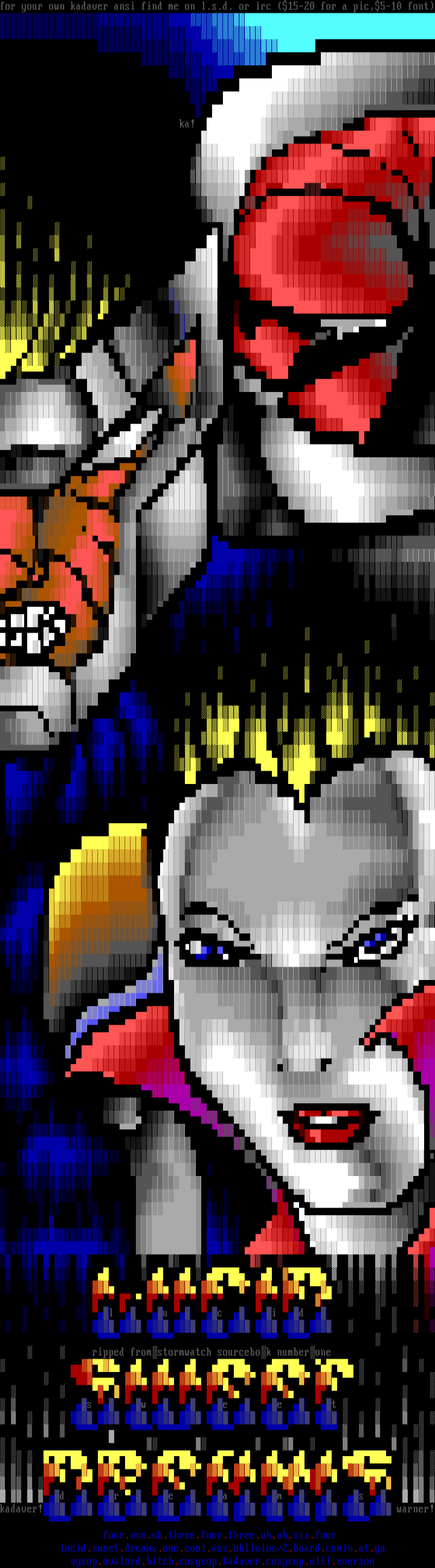 for your own kadaver ansi find me on l.s.d. or irc 15-20 for a pic,5-10 font