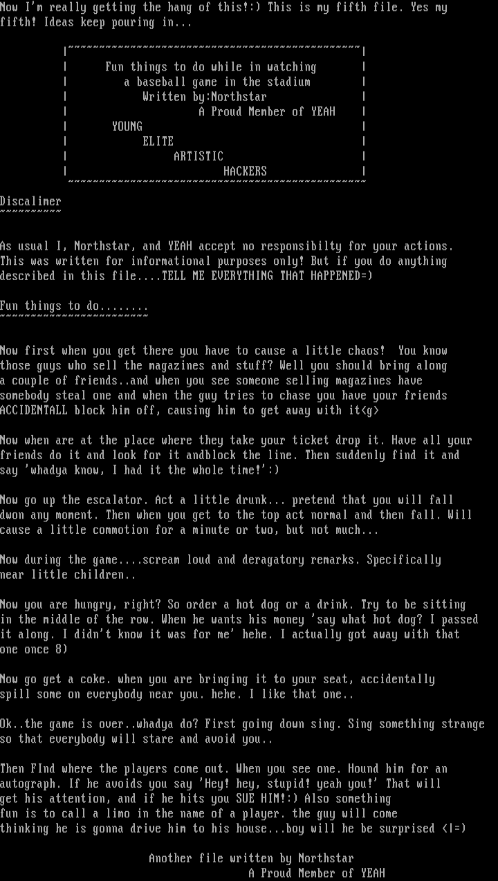 As usual I, Northstar, and YEAH accept no responsibilty for your actions.