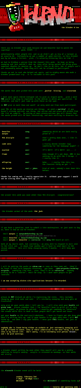 2stoned (1) acidic soap (1) alison horsejello-smithe (1) aneurysm (7) ansichrist (1) aoh (1) arlequin (1) armageddon donut (1) aspyre (1) avenger (1) axb (1) big yellow man (2) biogenesis (1) black jack (4) blaze-infinite (1) blender (7) blippypixel (1) burps (4) carnifex (1) catch 22 (5) chronicc (2) corinthian (4) crayon (2) creideiki (1) cthulu (12) dead soul (3) ellisdee (1) enzo (2) exulted (1) fear prophet (1) fever (1) free fall (1) funk-e (2) geekboy (3) gnome (1) god among lice (1) grav2 (1) grinch (7) grind king (1) groove (1) halaster (2) handiboy (15) happyfish (9) haquisaq (6) hayn9 (1) hennifer (10) impact (2) ironghost (2) jellica jake (2) jughead (1) kyo (4) lda (1) luminator (2) madman (1) mafesto (1) makavelli (1) maligore (1) mavrik (5) mel farr suppastar (3) menace (3) merlyn (1) mighty mouse (2) minotaur (2) mordecai (1) mr4tune (1) nail (7) neon horse (1) neophyte (7) neosmurf (2) nitnatsnoc (2) nitris (1) noize (1) oxidizer (1) paddy monahan (1) panacea (1) pandur (3) pinguino (2) platinum (4) pogue (1) polyducks (1) putrid carcass (1) quip (3) rabies (3) rage (5) raider (1) rekku (1) rorshack (1) runamok (1) rusted (1) samurai (5) satansly (1) serial toon (1) silent knight (2) skrubly (17) sodium (2) sphinx (1) spidy (1) spinsane (1) tainted (1) tetanus (4) thanatos (2) the 4th disciple (1) the extremist (4) the green hornet (4) the knight (6) the ruiner (1) the silent killer (1) tincat (6) toot (1) tricolore (3) twisted foo (1) unique phreak (1) universe (2) warpus (7) wat0r (3) whitetrash (1) xypher matryx (2) zeromous (1) zinnia rock (1) zir (2)